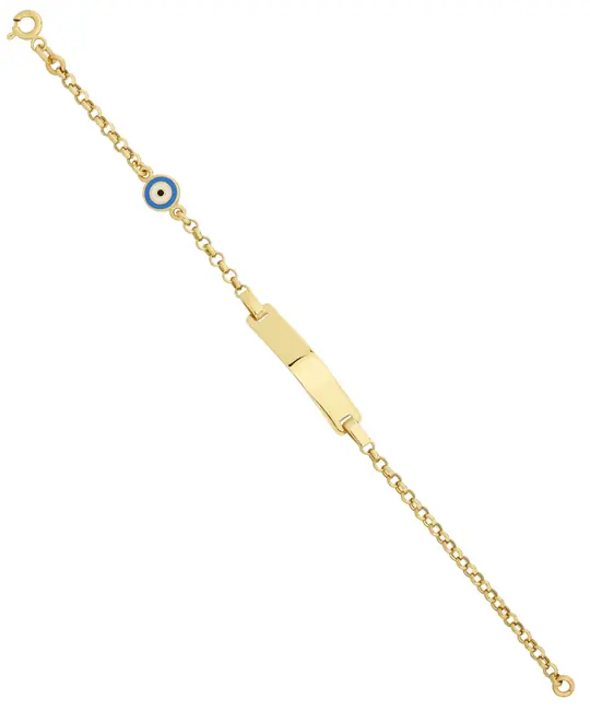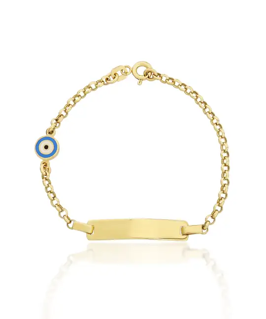İkra Kuyumculuk kalitesiyle 14 ayar altından özenle üretilen bu Altın Nazar Boncuklu Çocuk Künye, geleneksel nazar boncuğu figürüyle çocukları kötülüklerden koruduğuna inanılan anlamlı ve zarif bir tasarım sunuyor. Çocukların hassas ten yapısı gözetilerek pürüzsüz bir işçilikle hazırlanan künye, dayanıklı zincir yapısı ve güvenli klipsi sayesinde gün boyu konforlu ve emniyetli bir kullanım sağlar.