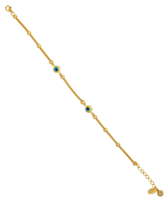 İkra Kuyumculuk koleksiyonuna ait bu Altın Nazar Göz Bileklik, koruyucu nazar boncuğu sembolünü İtalyan tasarım detayları ve 14 ayar altın kalitesiyle buluşturuyor. 5.44 gram ağırlığındaki dengeli ve şık yapısı, altının parlaklığını modern bir formda sunarak bileğinizde zarif bir duruş sergiler.