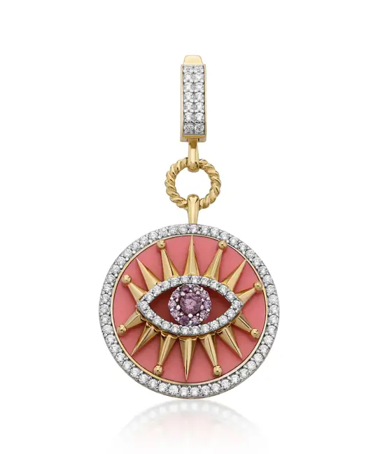 İkra Kuyumculuk koleksiyonuna ait bu Altın Pembe Göz Kolye Ucu, koruyucu sembolizmi modern ve soft bir estetikle 14 ayar altın kalitesinde sunuyor. 4.32 gram ağırlığındaki dolgun ve seçkin yapısı, pembe tonların zarif dokunuşuyla birleşerek boyun hattınızda sıcak ve ışıltılı bir duruş sergiler.