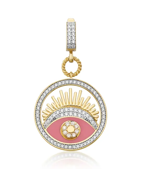 İkra Kuyumculuk koleksiyonuna ait bu Altın Pembe Göz Kolye Ucu, koruyucu göz sembolünü 14 ayar altın ve pembenin yumuşak tonlarıyla modern bir estetikle buluşturuyor. 4.35 gram ağırlığındaki zarif ve özgün yapısı, merkezindeki ışıltılı taş detayları ve pembe renk geçişleriyle klasik motife sofistike bir yorum getirir.