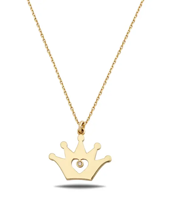 İkra Kuyumculuk koleksiyonuna ait bu Altın Prenses Taç Kolye, krallara layık bir zarafeti 14 ayar altın işçiliğiyle boynunuza taşıyor. 2.93 gram ağırlığındaki zarif ve asil yapısıyla öne çıkan bu parça, prenses tacı figürünün ince detaylarıyla stilinize seçkin bir dokunuş katar.