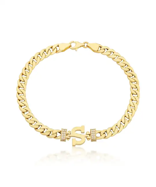 Zincir tasarımı ve ortasında yer alan zarif “S” harfi detayıyla bu altın bileklik, modern ve sofistike bir tarz sunuyor. Parlak taşlarla süslenmiş detayları, bilekliğe dikkat çekici bir ışıltı katarken, altının sıcak tonlarıyla uyumlu bir estetik oluşturuyor. Şıklığı ve zarafeti bir arada sunan bu bileklik, özel tasarımıyla stilinize özgün bir dokunuş ekliyor. Her anınıza anlam ve parıltı katacak bir parça.