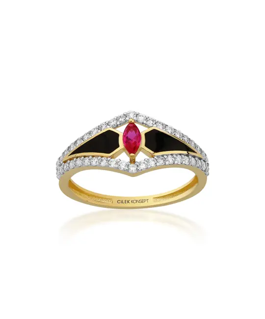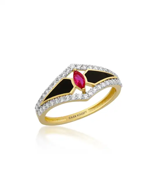 İkra Kuyumculuk koleksiyonuna ait bu Altın Siyah Mineli Yüzük, siyah minenin asaletini 14 ayar altın kalitesiyle bir araya getiriyor. 2.13 gram ağırlığındaki modern yapısı, kontrast renklerin uyumuyla parmağınızda dikkat çekici ve estetik bir duruş sergiler.