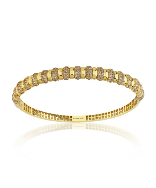 İkra Kuyumculuk koleksiyonuna ait bu Altın Taşlı Bilezik, ışıltılı taş detaylarını 14 ayar altın kalitesiyle birleştirerek sunar. 10.09 gram ağırlığındaki zarif ve dengeli yapısı, bileğinizde seçkin bir duruş sergiler.