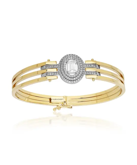 İkra Kuyumculuk koleksiyonuna ait bu Altın Taşlı Bilezik, ışıltılı detayları 14 ayar altın kalitesiyle birleştirir. 14 gram ağırlığındaki tok yapısı, bileğinizde seçkin ve dengeli bir duruş sergiler.