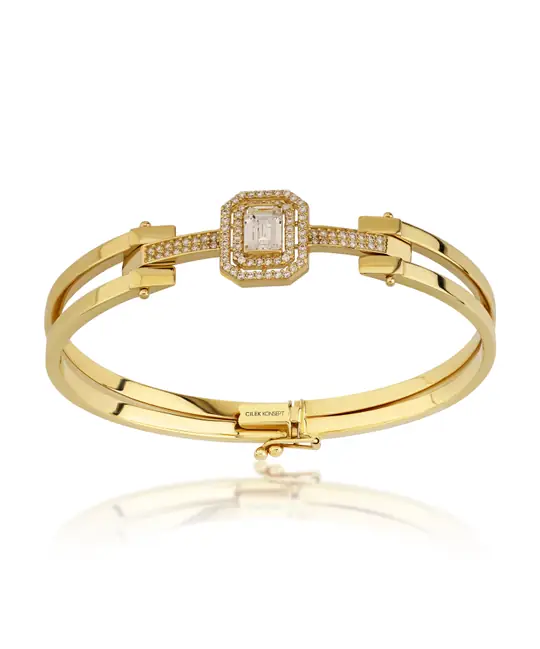İkra Kuyumculuk koleksiyonuna ait bu Altın Taşlı Bilezik, ışıltılı detayları 14 ayar altın kalitesiyle birleştirir. 11.37 gram ağırlığındaki estetik yapısı, bileğinizde seçkin ve zarif bir duruş sergiler.