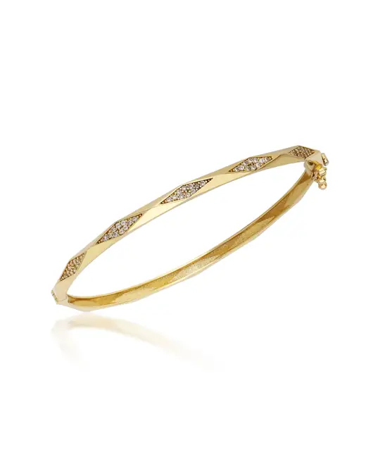 İkra Kuyumculuk koleksiyonuna ait bu Altın Taşlı Bilezik, modern geometrik kıvrımları ve ışıltılı detayları 14 ayar altın kalitesiyle birleştirir. 7.36 gram ağırlığındaki zarif ve ince yapısı, bileğinizde sofistike bir duruş sergiler.