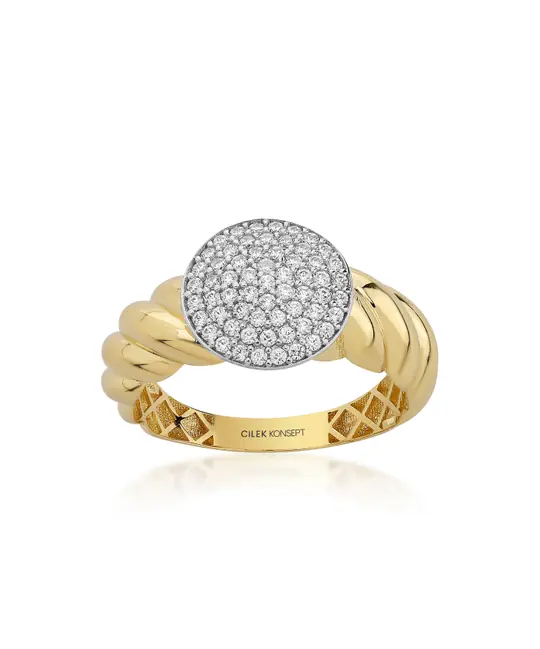 İkra Kuyumculuk koleksiyonuna ait bu Altın Taşlı Burgu Yüzük, burgu formunun estetiğini ışıltılı taşlarla harmanlayarak 14 ayar altın kalitesiyle sunar. 2.34 gram ağırlığındaki zarif tasarımı, parmağınızda modern bir duruş sergilerken gün boyu konforlu kullanım sağlar.