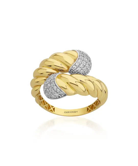 Burgu deseninin yarattığı karakteristik doku ve taşların parıltısı, bu yüzüğü stilinize sofistike bir dokunuş katan şık bir aksesuar ve sevdikleriniz için narin bir hediye seçeneği haline getirir.