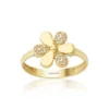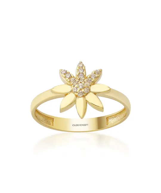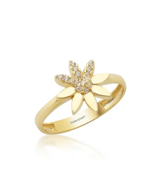 İkra Kuyumculuk koleksiyonuna ait bu Altın Taşlı Çiçek Yüzük, çiçek figürünün narinliğini ve taşların ışıltısını 14 ayar altın kalitesiyle sunar. 1.53 gram ağırlığındaki hafif yapısı, parmağınızda estetik bir duruş sergilerken gün boyu konforlu bir kullanım sağlar.