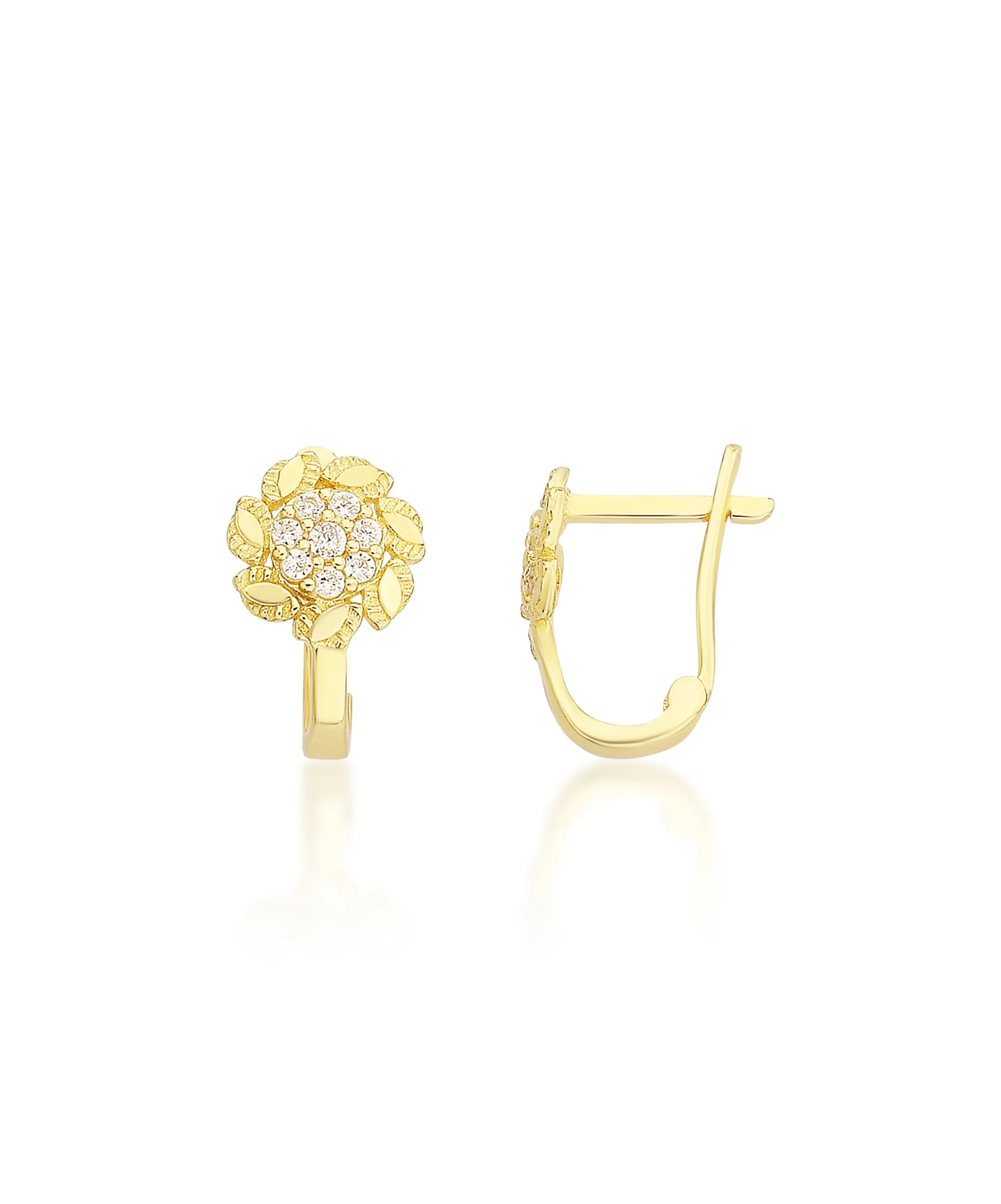 İkra Kuyumculuk kalitesiyle 14 ayar altından özenle üretilen bu Altın Taşlı Çocuk Küpe, miniklerin narin yapısına uyum sağlayan ışıltılı ve zarif bir tasarıma sahiptir. Hassas tenler için pürüzsüz yüzey ve güvenli kilit mekanizmasıyla hazırlanan bu küpeler, usta işçiliği sayesinde gün boyu konforlu bir kullanım sunar.