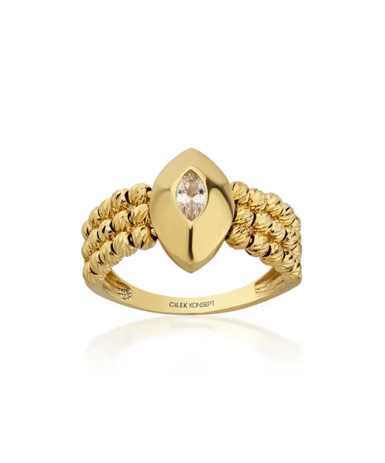 İkra Kuyumculuk koleksiyonuna ait bu Altın Taşlı Dorika Yüzük, karakteristik dorika toplarının dokusunu ışıltılı taşlarla harmanlayarak 14 ayar altın kalitesiyle sunar. 2.63 gram ağırlığındaki zarif tasarımı, parmağınızda modern bir duruş sergilerken gün boyu konforlu kullanım sağlar.