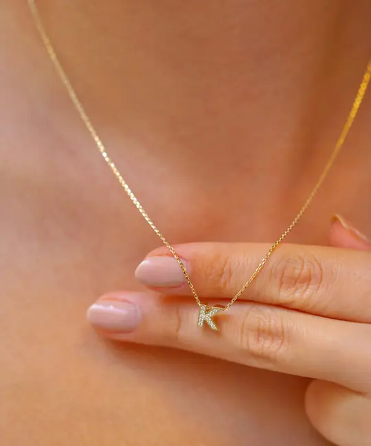 Işıltılı detaylarıyla dikkat çeken taşlı “K” harfi kolye, zarif ve anlamlı tasarımları sevenler için mükemmel bir seçimdir. Parlak taşlarla süslenen harf formu, şık bir dokunuş katarken altının sıcak ışıltısıyla kusursuz bir uyum yakalar. Kişisel anlam taşıyan bu özel tasarım, anılarınızı stilinize yansıtmanın en zarif yollarından biridir.