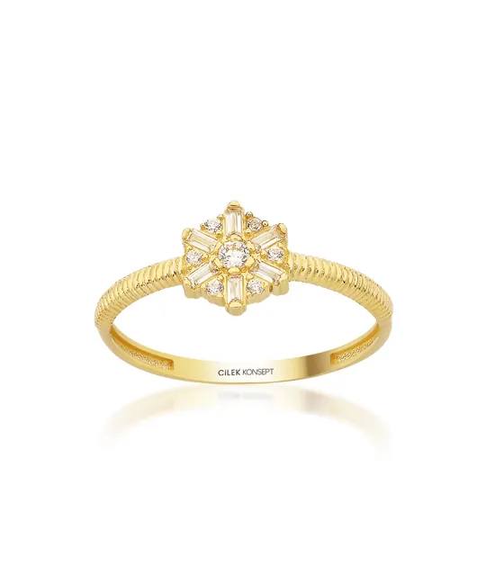 Altın Taşlı Kar Tanesi Yüzük