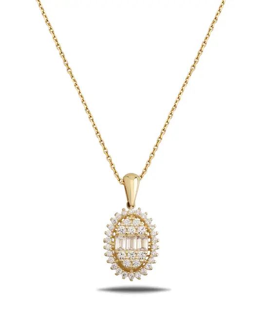 İkra Kuyumculuk koleksiyonuna ait bu Altın Taşlı Kolye, baget kesim taşların modern geometrisini 14 ayar altın kalitesiyle birleştirir. 2.62 gram ağırlığındaki zarif yapısı ve 42-45 cm aralığındaki ayarlanabilir zincir uzunluğuyla, boynunuzda estetik ve konforlu bir duruş sergiler.