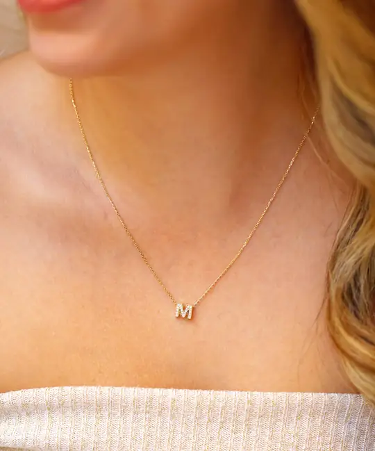 Işıltılı detaylarıyla öne çıkan taşlı “M” harf kolye, zarif ve anlamlı tasarımlardan hoşlananlar için mükemmel bir tercihtir. Parlak taşlarla süslenen harf formu, altının sıcak ışıltısıyla kusursuz bir uyum sağlayarak kolyeye sofistike bir görünüm kazandırır. Kişisel anlam taşıyan özel aksesuarları sevenler için ideal olan bu tasarım, anılarınızı stilinize yansıtmanın en zarif yollarından biridir.