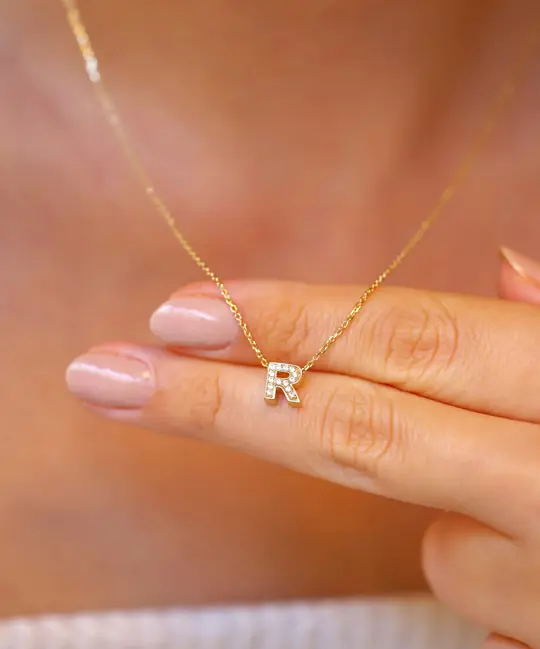 Işıltılı detaylarıyla dikkat çeken taşlı “R” harfi kolye, zarif ve anlamlı tasarımları sevenler için mükemmel bir seçimdir. Parlak taşlarla süslenen harf formu, şık bir dokunuş katarken altının sıcak ışıltısıyla kusursuz bir uyum yakalar. Kişisel anlam taşıyan bu özel tasarım, anıları stilinize yansıtmanın en zarif yollarından biridir.