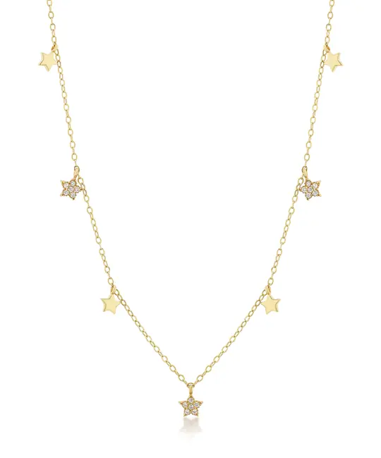 İkra Kuyumculuk koleksiyonuna ait bu Altın Taşlı Yıldız Kolye, gökyüzünün ışıltısını 14 ayar altın ve parlayan taş detaylarıyla boynunuza taşıyor. 2.02 gram ağırlığındaki zarif ve naif yapısı, yıldız figürlerinin üzerine titizlikle yerleştirilmiş taşlarla birleşerek her harekette dinamik bir parıltı sunar.