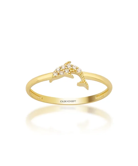 İkra Kuyumculuk koleksiyonuna ait bu Altın Taşlı Yunus Balığı Yüzük, denizlerin neşesini simgeleyen yunus formunu taşların ışıltısı ve 14 ayar altın kalitesiyle birleştirir. 0.86 gram ağırlığındaki minimal ve hafif yapısı, parmağınızda narin bir duruş sergilerken gün boyu konforlu bir kullanım sunar.