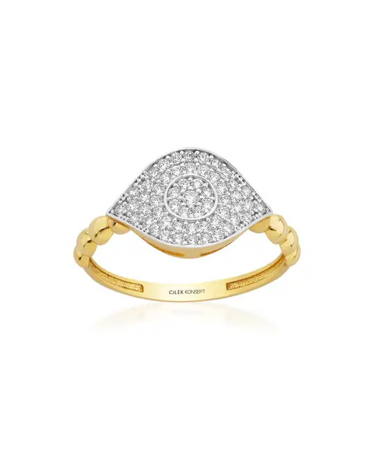 İkra Kuyumculuk koleksiyonuna ait bu Altın Taşlı Yüzük, ışıldayan taş süslemelerini 14 ayar altın kalitesiyle birleştirerek sunar. 1.81 gram ağırlığındaki hafif ve zarif tasarımı, parmağınızda narin bir duruş sergilerken gün boyu konforlu bir kullanım vaat eder.
