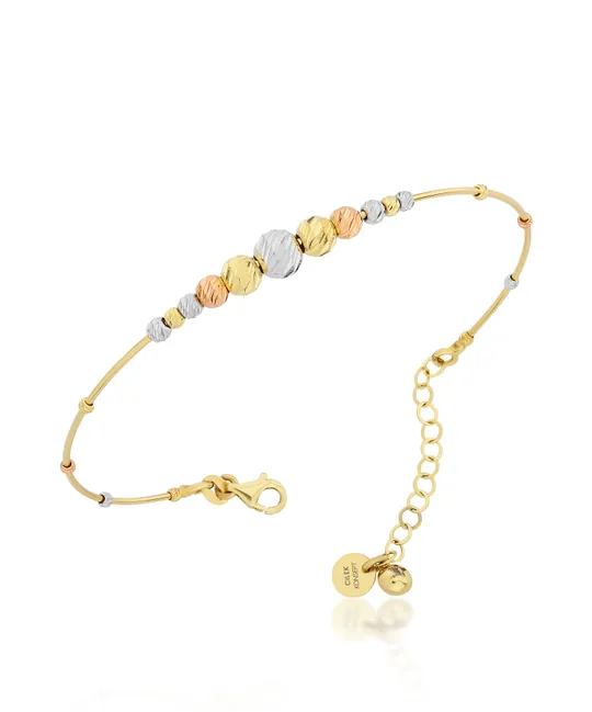 Altın Üç Renk Dorika Bileklik, klasik dorika zincir formunu sarı, rose ve beyaz altın renk uyumu ile birleştiren, modern ve kullanışlı bir altın bileklik modelidir. Zincirin üç renkli tasarımı, bilekte dengeli ve şık bir görünüm sağlar. Üretimde kullanılan 14 ayar altın, ürünün parlaklık ve dayanıklılığını garanti eder.