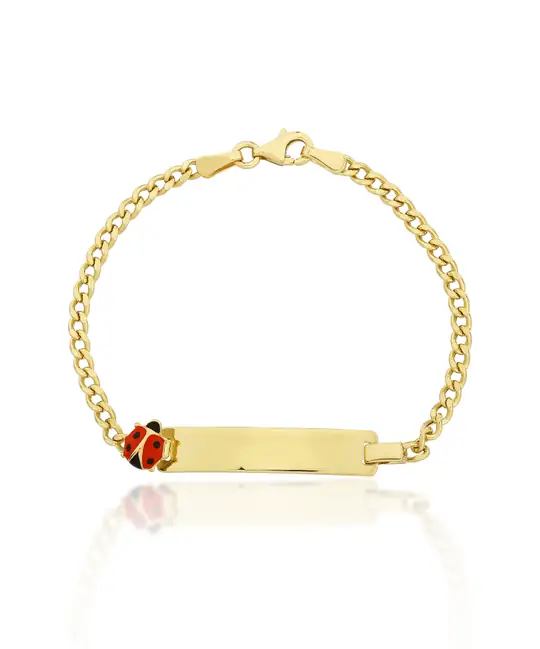 İkra Kuyumculuk kalitesiyle 14 ayar altından özenle üretilen bu Altın Uğur Böceği Çocuk Künye, şansın ve neşenin sembolü olan uğur böceği figürüyle çocukların bileklerine zarif bir dokunuş katıyor. Çocukların hassas ten yapısı gözetilerek pürüzsüz bir işçilikle hazırlanan künye, dayanıklı zincir yapısı ve güvenli klipsi sayesinde gün boyu konforlu ve emniyetli bir kullanım sağlar.