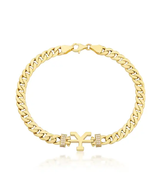 Altın Y harf bileklik, şıklığı ve zarafetiyle dikkat çeker. Bilekliği süsleyen büyük “Y” harfi, taş detayları ile zenginleştirilmiş ve altın zincirle mükemmel bir uyum içinde tasarlanmıştır.