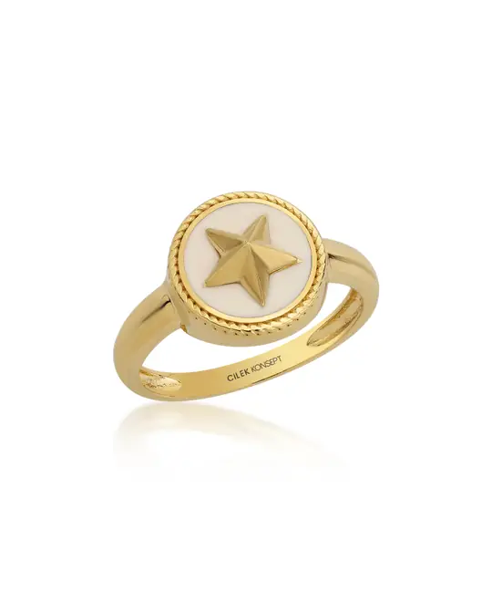 Altın Yıldız Yüzük, yıldız figürü formu esas alınarak tasarlanmış bir altın yüzük modelidir. Yüzük üzerinde yer alan yıldız detayı, formun merkezinde konumlandırılarak tasarımın bütünlüğünü oluşturur. Net hatlara sahip yapısı, yüzük formunun okunabilirliğini artırır.