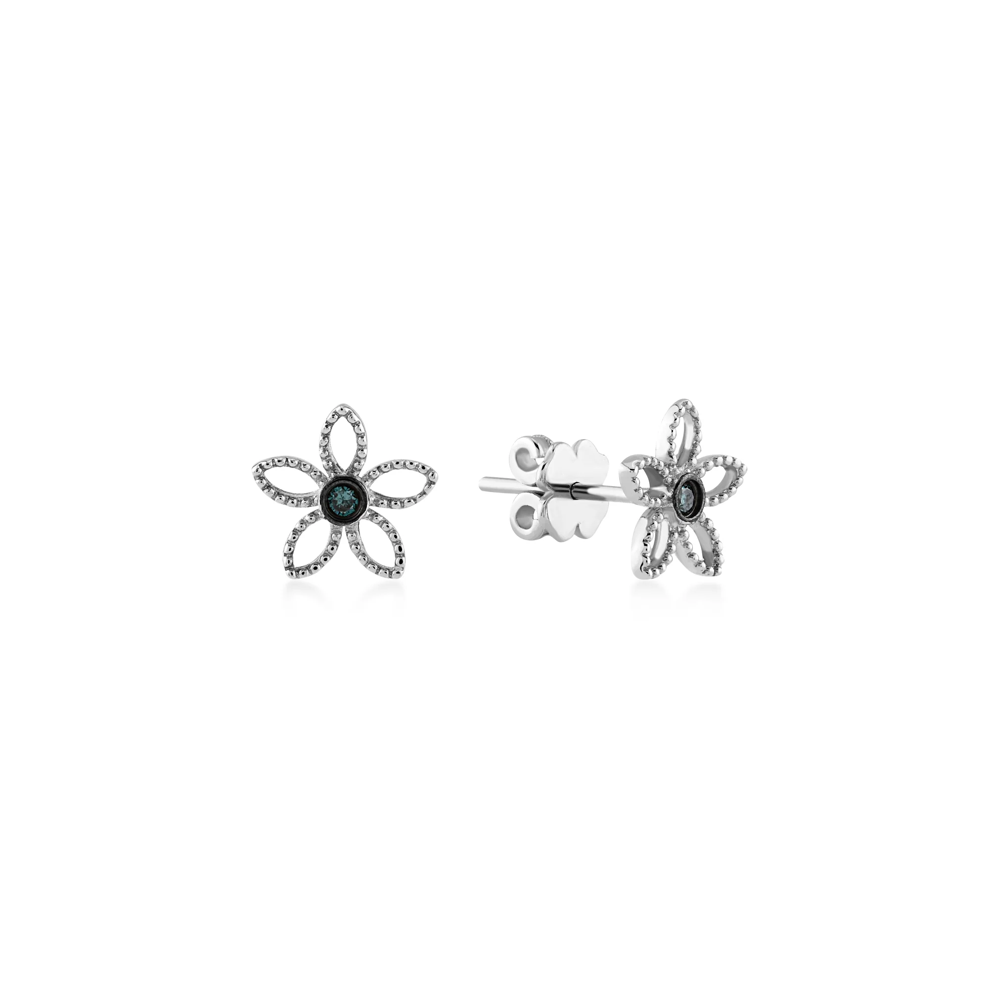 Azzuro Çiçek Form Mavi Pırlanta Küpe