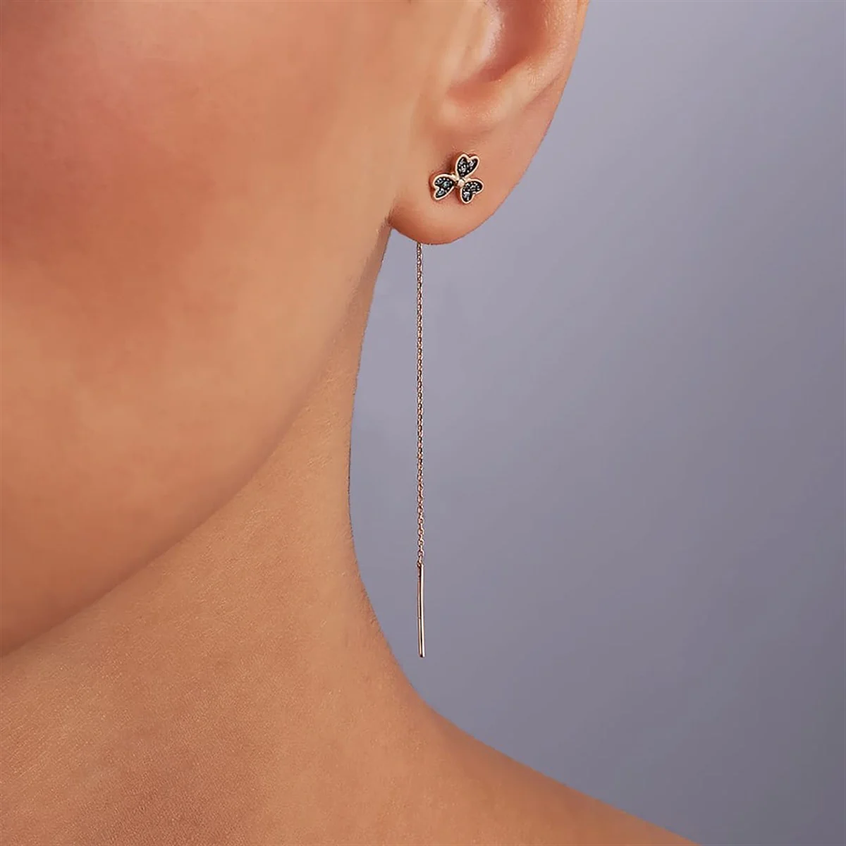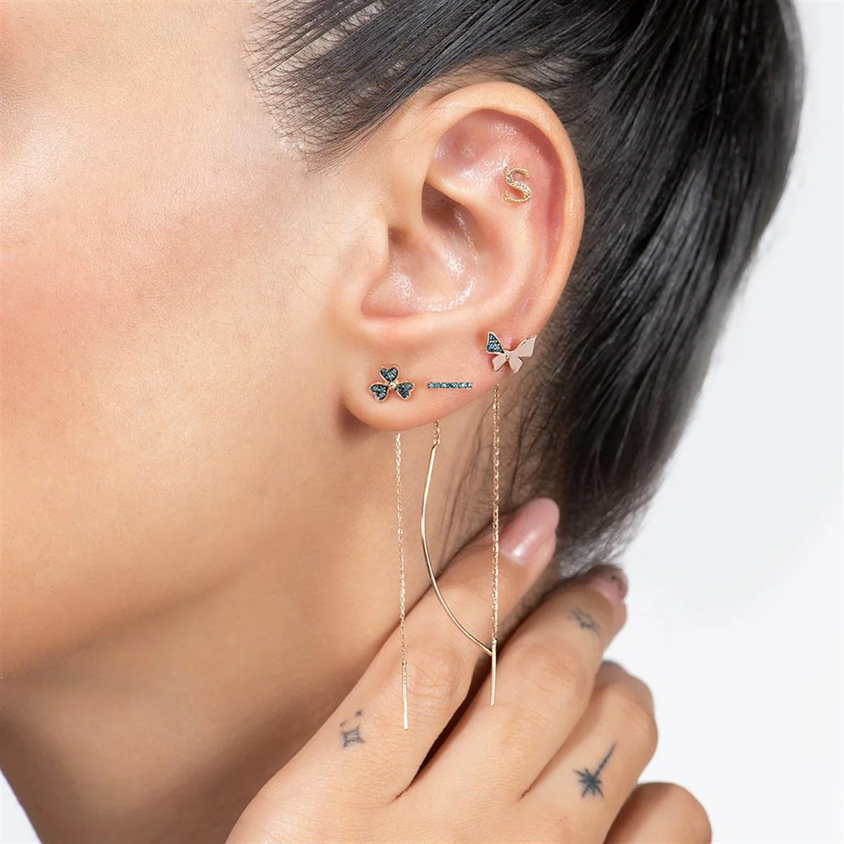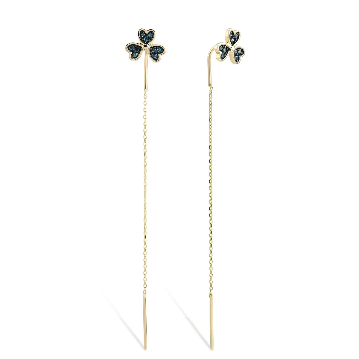 14 ayar altından zarafetle tasarlanan Azzuro Mavi Pırlanta Yonca Küpe, şansın ve zarafetin simgesi olan yonca formuyla dikkat çeker. Üzerindeki mavi pırlantalar, tasarıma hem modern hem de sofistike bir hava katar. Günlük kullanımlarda zarif bir detay olarak parıldarken, özel davetlerde de göz alıcı bir tamamlayıcıdır. Rose, sarı ve beyaz altın renk seçenekleriyle her zevke hitap eder.