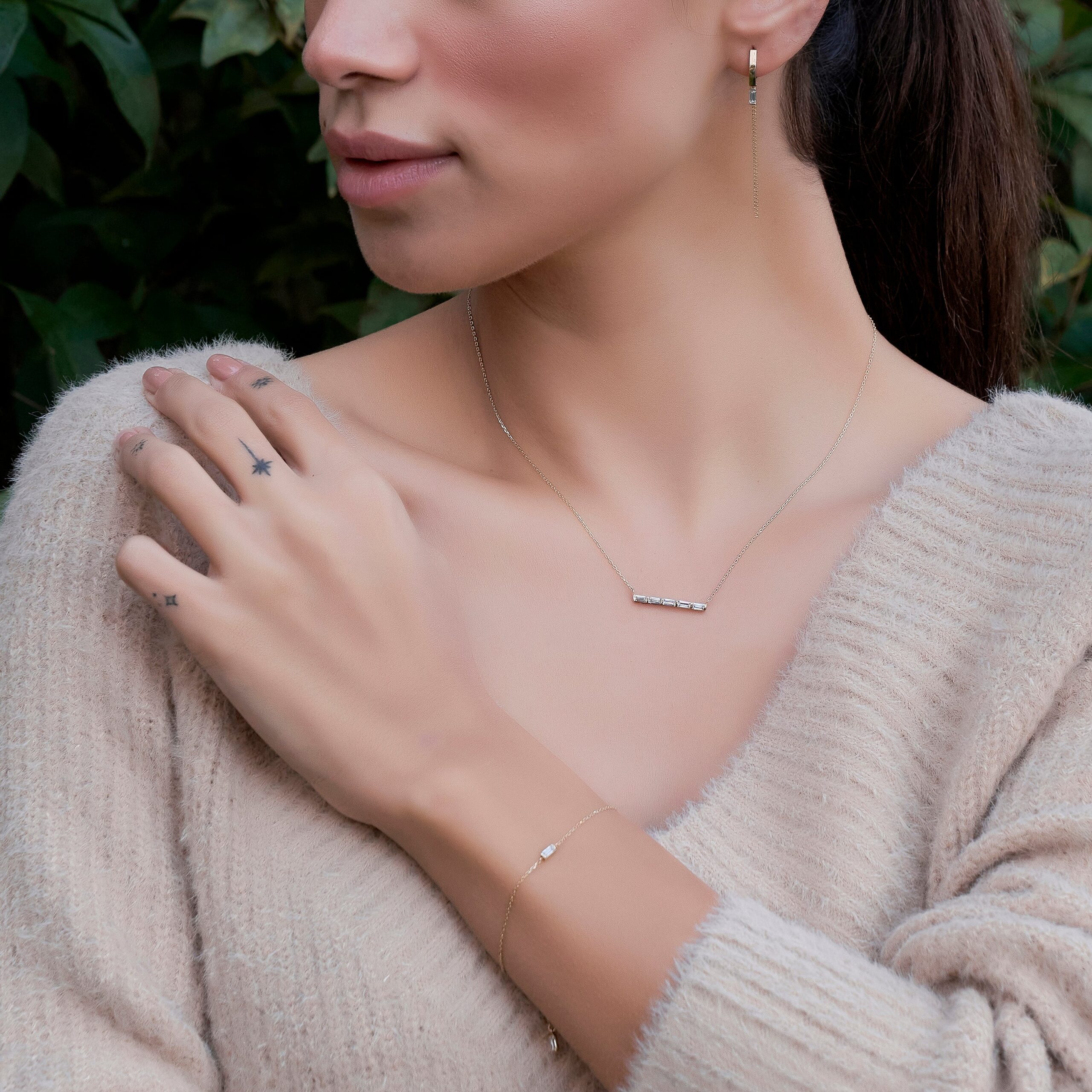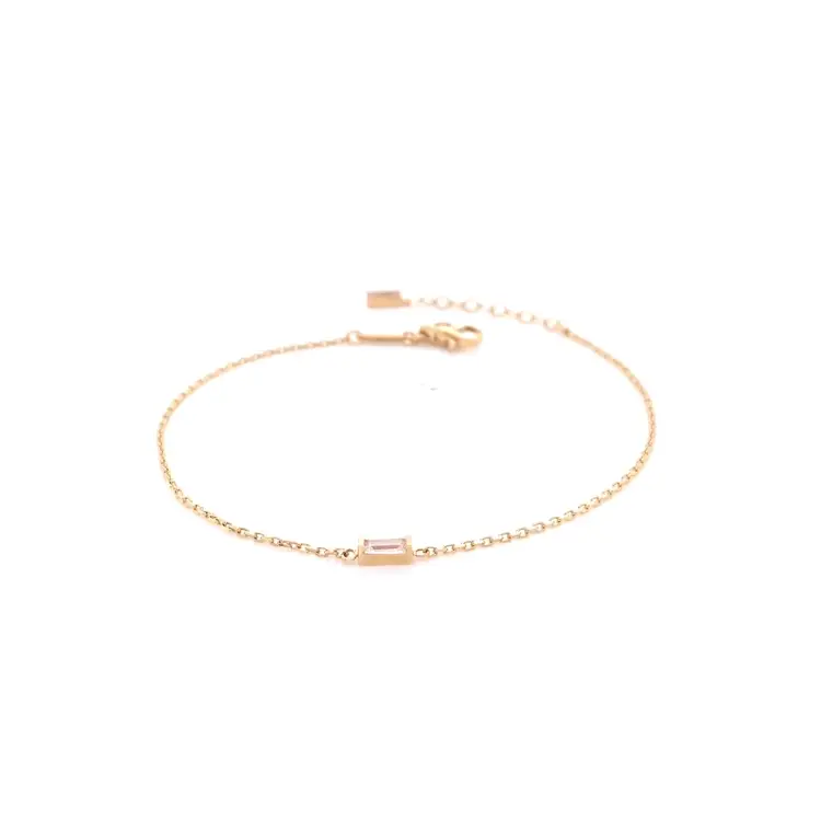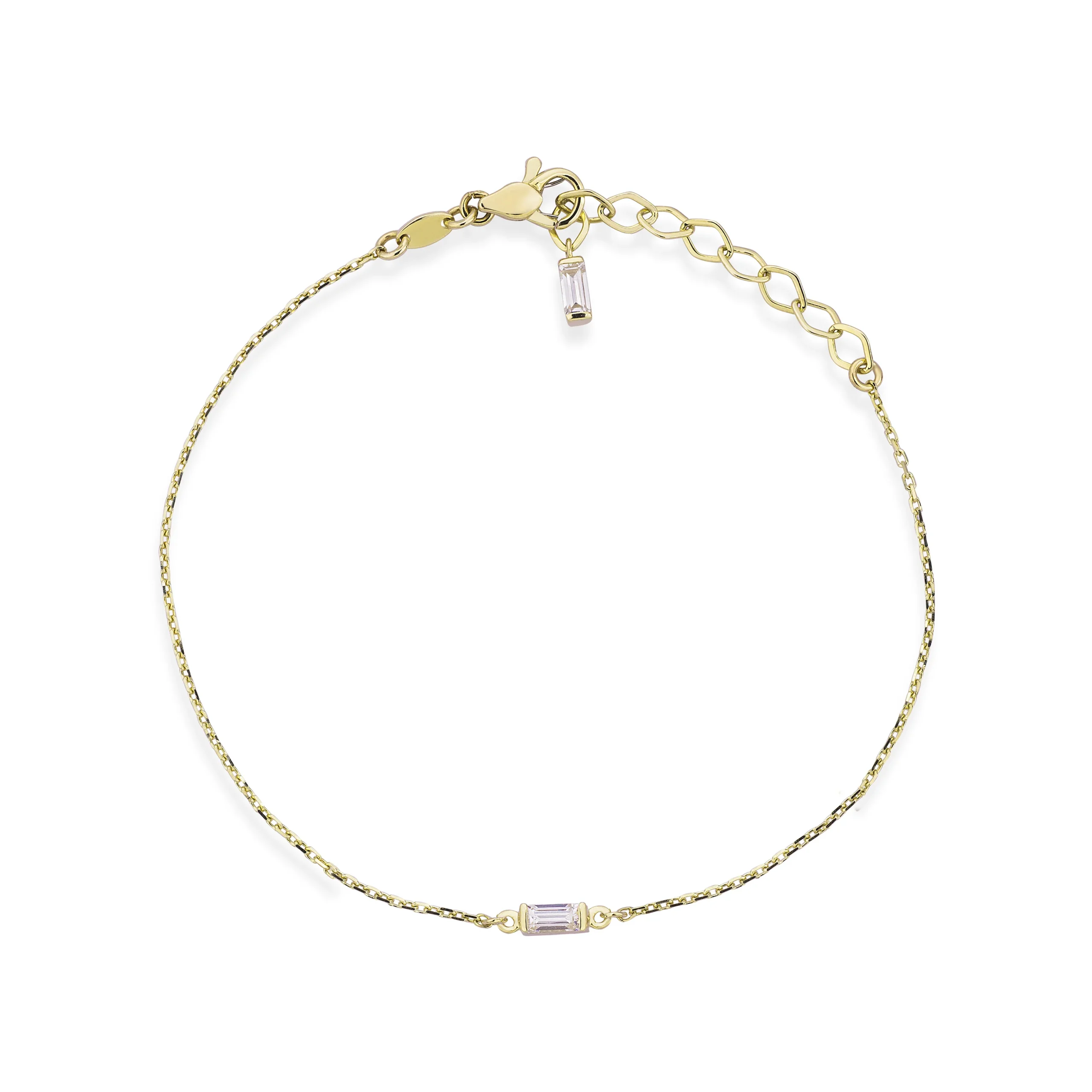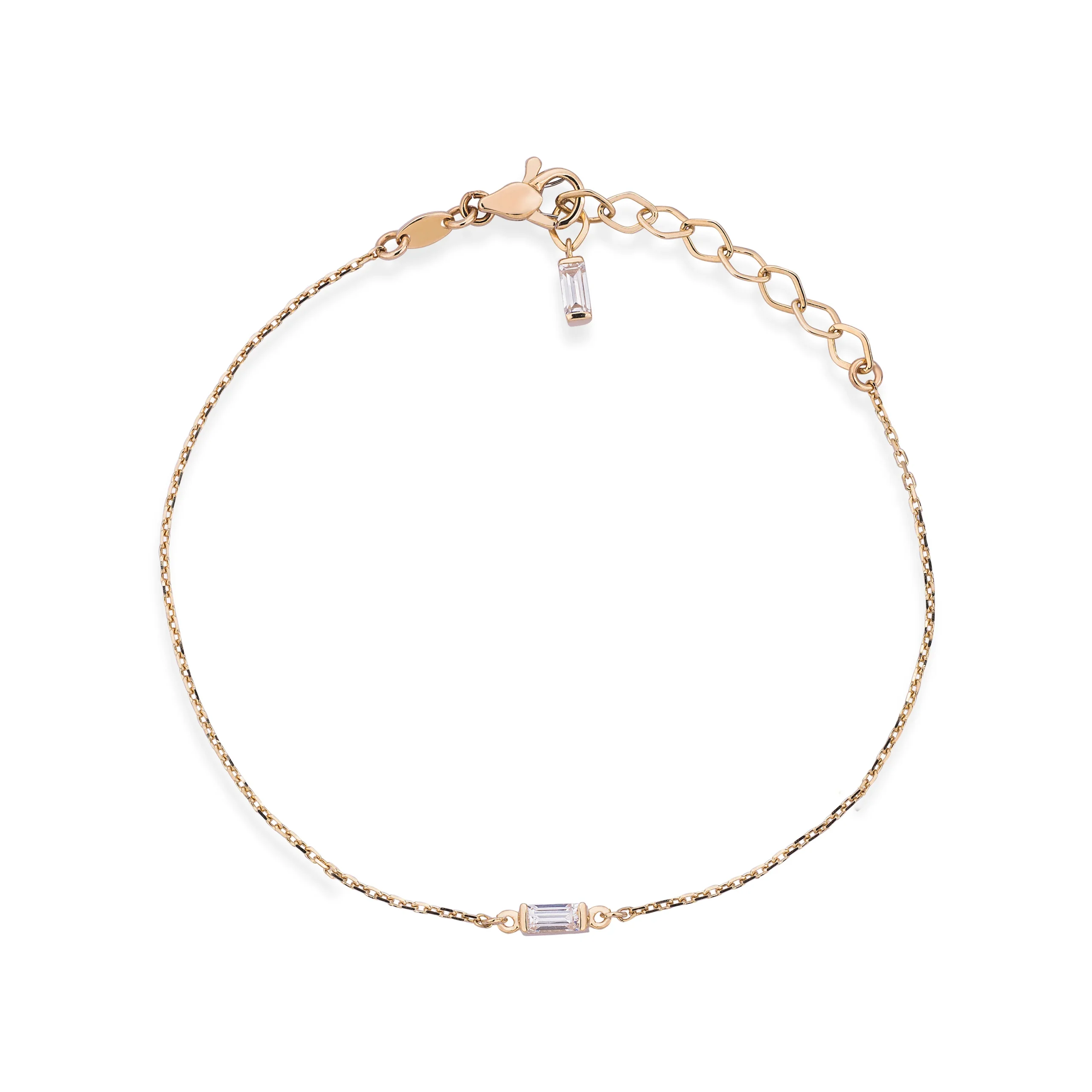14 ayar altının parlak dokusuyla tasarlanan Bagetto Baget Altın Bileklik, sade ve zarif tasarımıyla günlük şıklığı tamamlayan özel bir modeldir. Baget kesim zirkon taşların göz alıcı ışıltısıyla birleşerek klasik ve modern çizgiyi bir arada sunar. 16,5 cm uzunluğa eklenen 2 cm uzatma payı ile bileğe tam uyum sağlar. Günlük kullanımda da özel günlerde de zarafetinden ödün vermeyen kadınlar için tasarlanmıştır. Sarı, rose ve beyaz altın renk seçenekleriyle üretilmektedir.