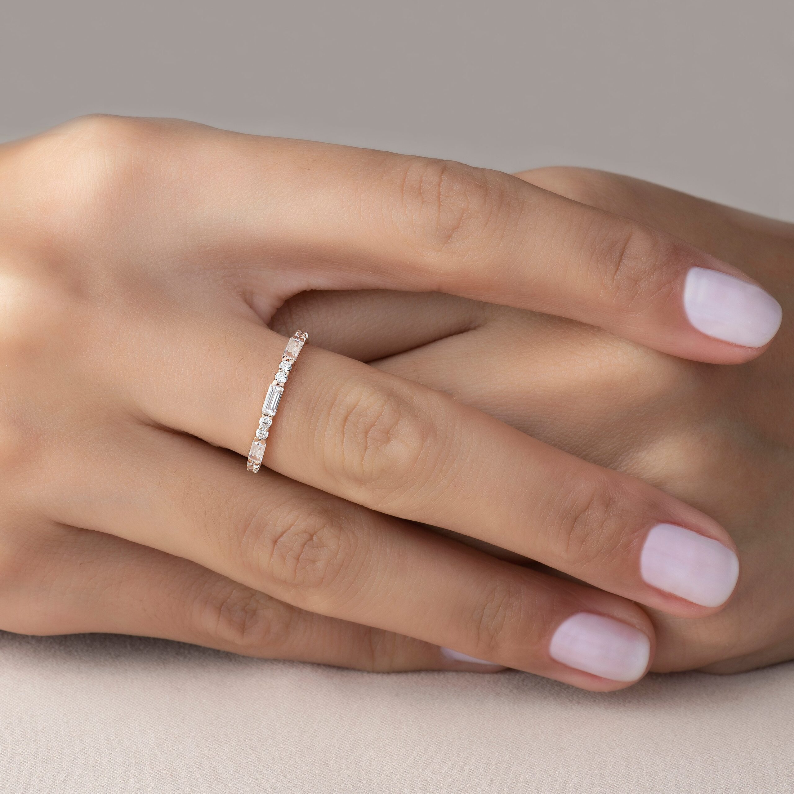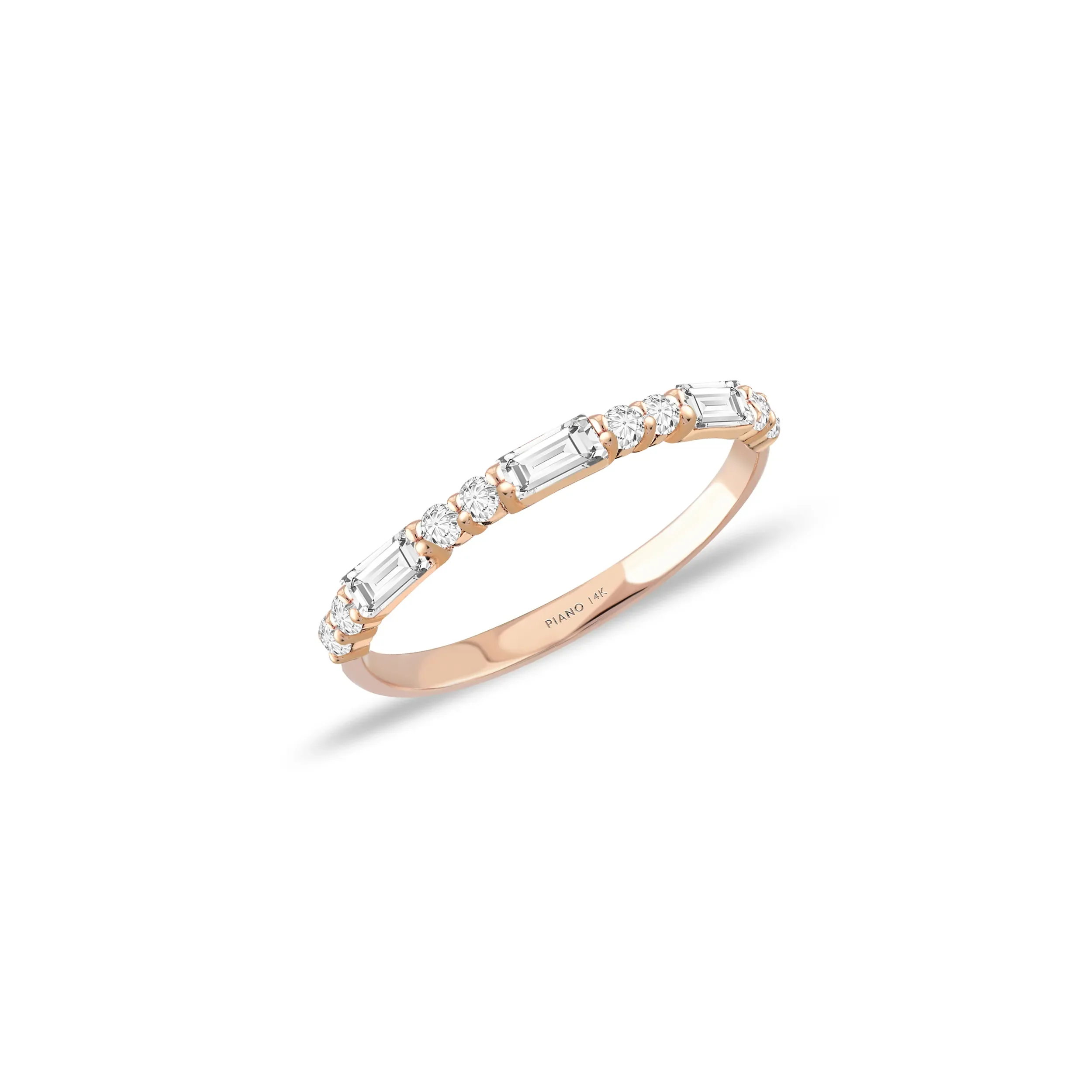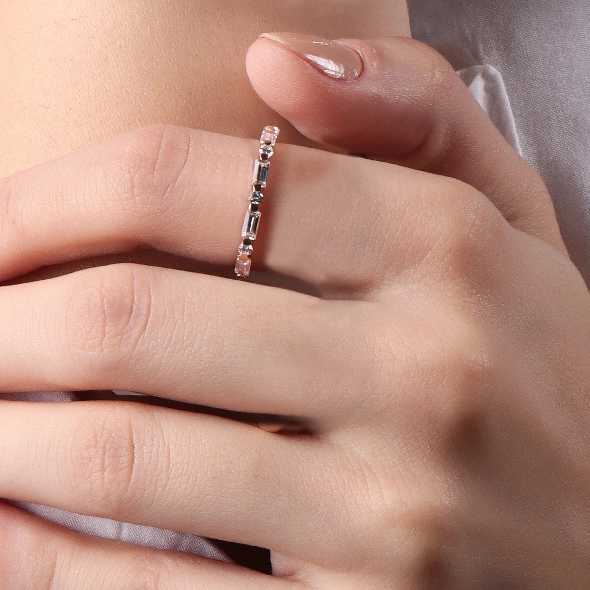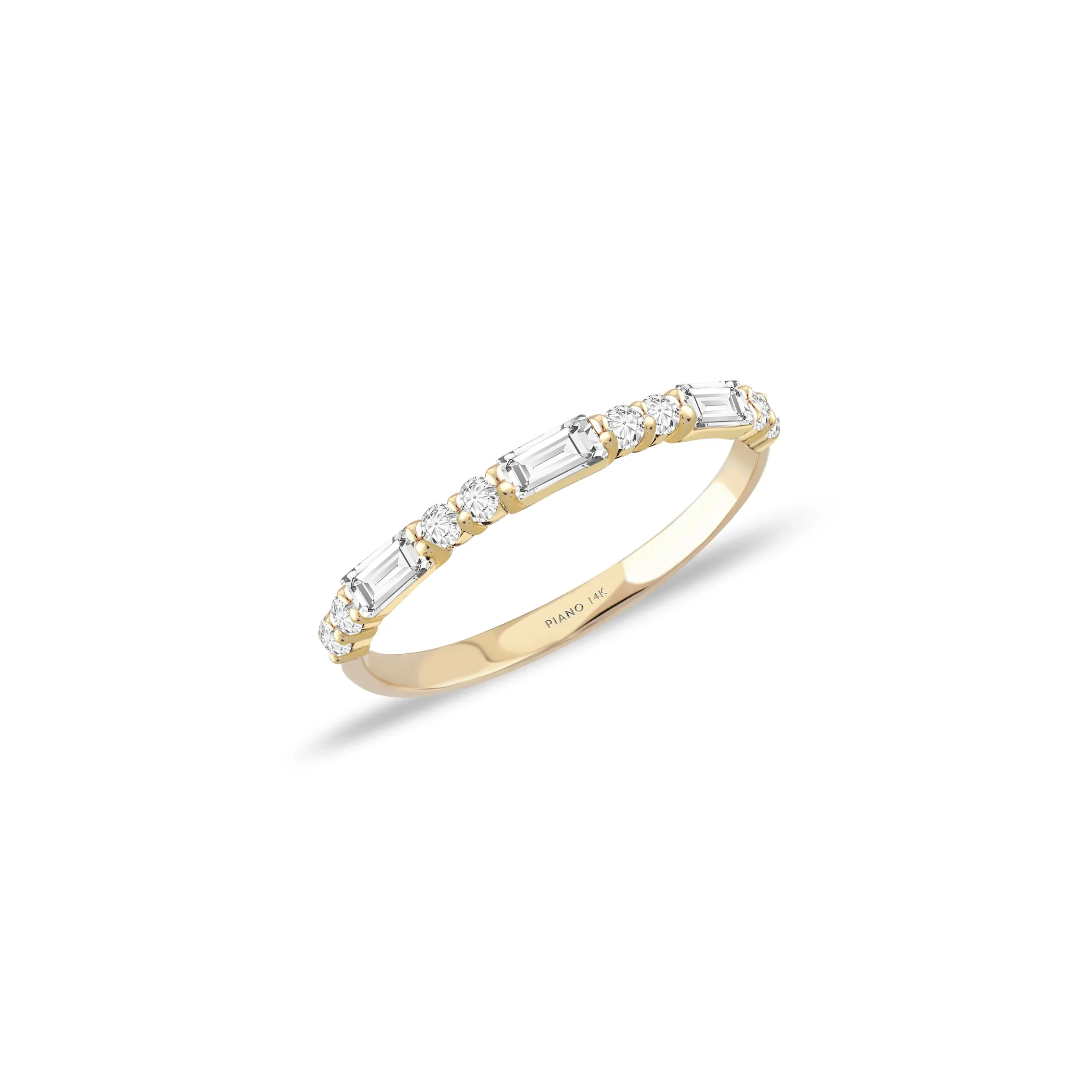 Bagetto Yarım Tur Altın Yüzük, zarif ve modern tasarımıyla şıklığı ön plana çıkarır. 14 ayar altından üretilen bu özel yüzük, 5A zirkon taşlarıyla ışıltılı bir görünüm sunar.