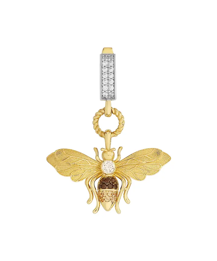 Bee Mine Altın Arı Beyaz Taşlı Kolye Ucu