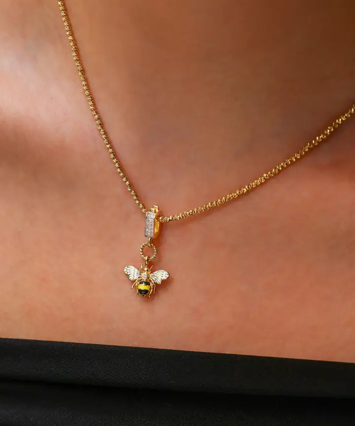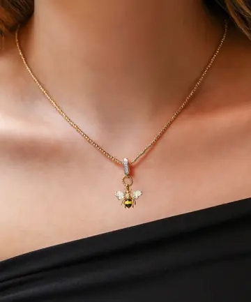 Bee Mine Altın Arı Beyaz Taşlı Kolye Ucu