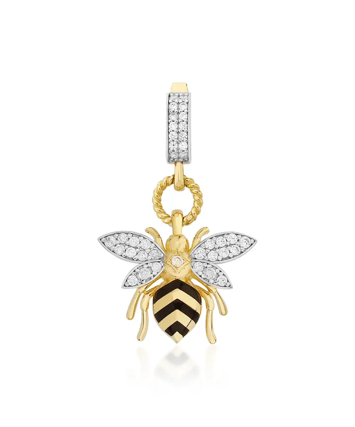 Bee Mine Altın Arı Beyaz Taşlı Kolye Ucu