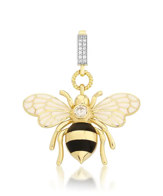Bee Mine Altın Arı Beyaz Taşlı Kolye Ucu