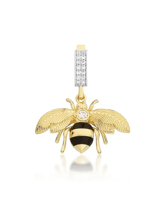 Bee Mine Altın Arı Beyaz Taşlı Kolye Ucu