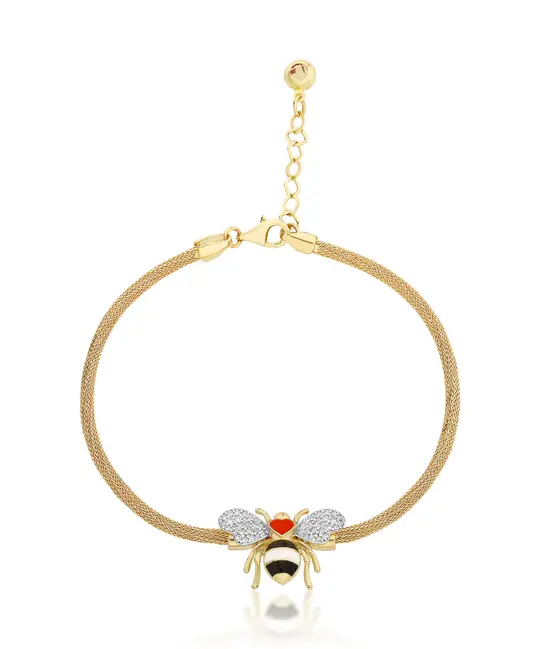 Tasarım Tipi Arı Motifli Siyah Detaylı Bileklik (Bee Mine Koleksiyonu)