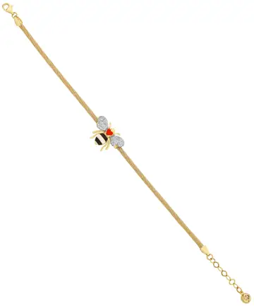 14 ayar altından üretilen Bee Mine Altın Arı Bileklik, yaklaşık 6,53 gram ağırlığındadır ve siyah detaylı arı figürleriyle şık ve modern bir görünüm sunar.