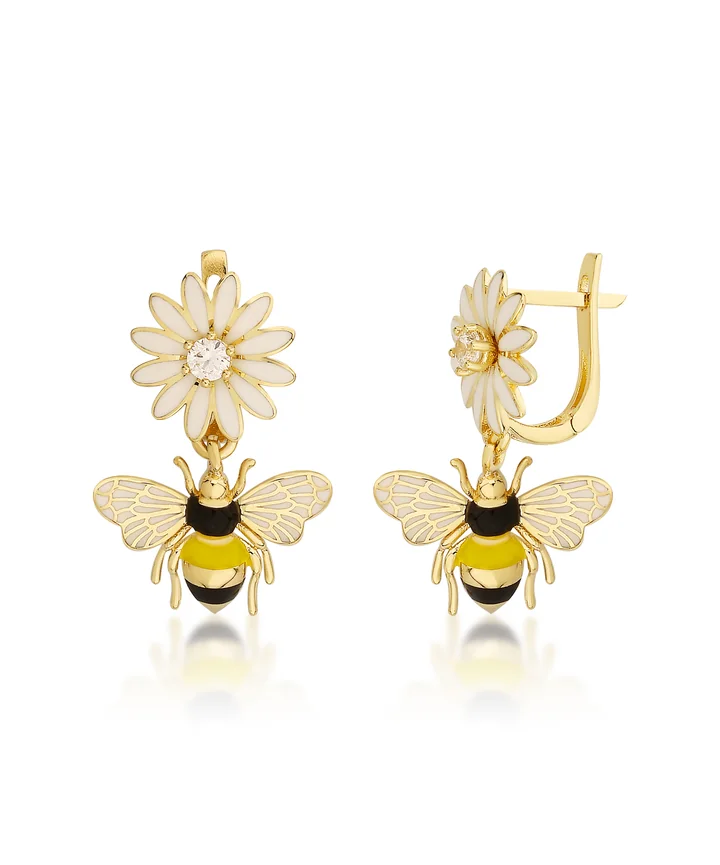 Bee Mine Altın Arı Çiçek Küpe