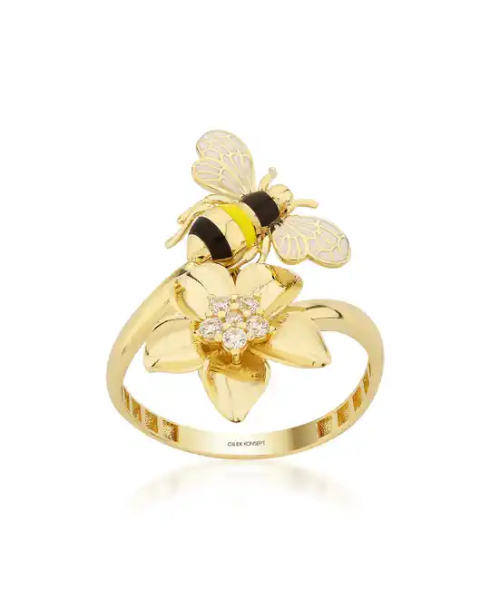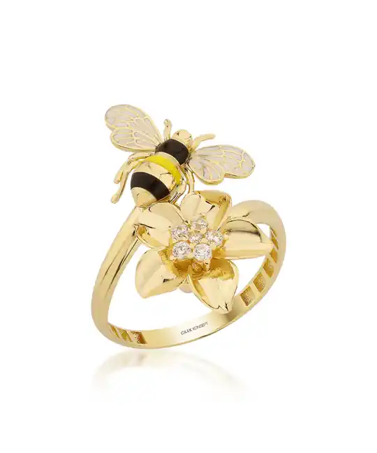 Tasarım Tipi Arı ve Çiçek Motifli Yüzük (Bee Mine Koleksiyonu)