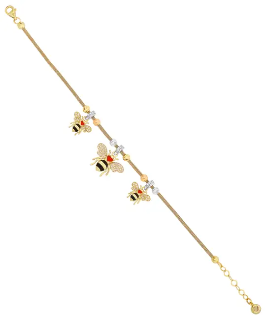 14 ayar altından üretilen Bee Mine Altın Arı Kalpli Bileklik, yaklaşık 8,32 gram ağırlığındadır ve arı ile kalp motiflerinin dolgun ve zarif birleşimini sunar.