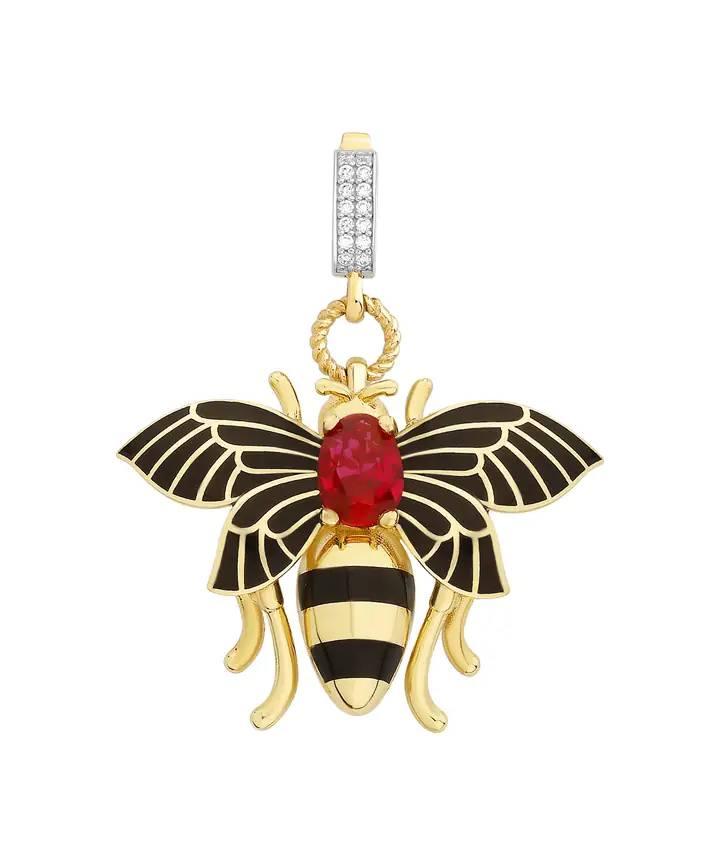 Bee Mine Altın Arı Kırmızı Taşlı Kolye Ucu