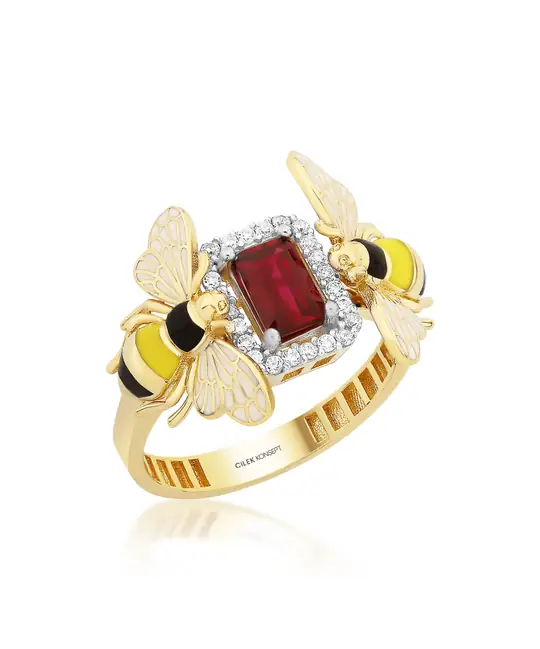 Tasarım Tipi Arı Motifli Kırmızı Taşlı Yüzük (Bee Mine Koleksiyonu)