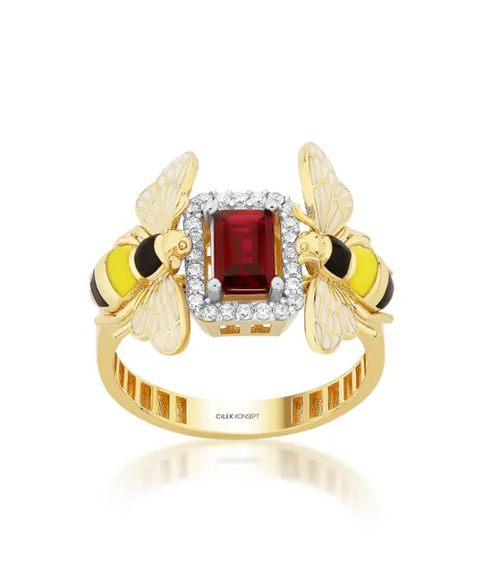 Bee Mine Altın Arı Kırmızı Taşlı Yüzük