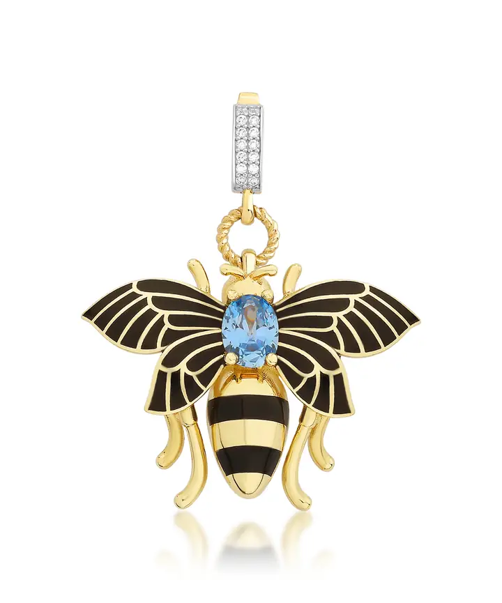 Bee Mine Altın Arı Mavi Taşlı Kolye Ucu