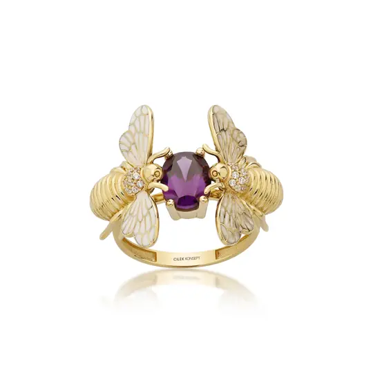 Bee Mine Altın Arı Mor Taşlı Yüzük