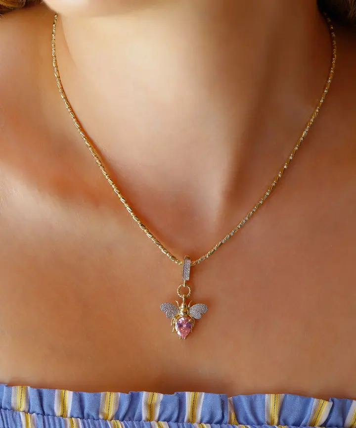 Tasarım Tipi Pembe Taşlı Arı Motifli Kolye Ucu