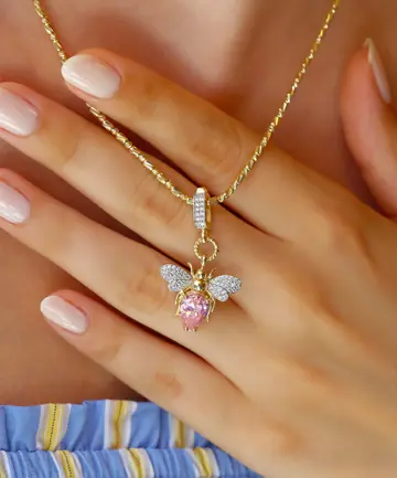 Bee Mine Altın Arı Pembe Taşlı Kolye Ucu
