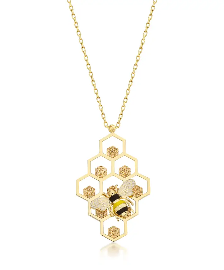 Bee Mine Altın Arı Petek Zincirli Kolye